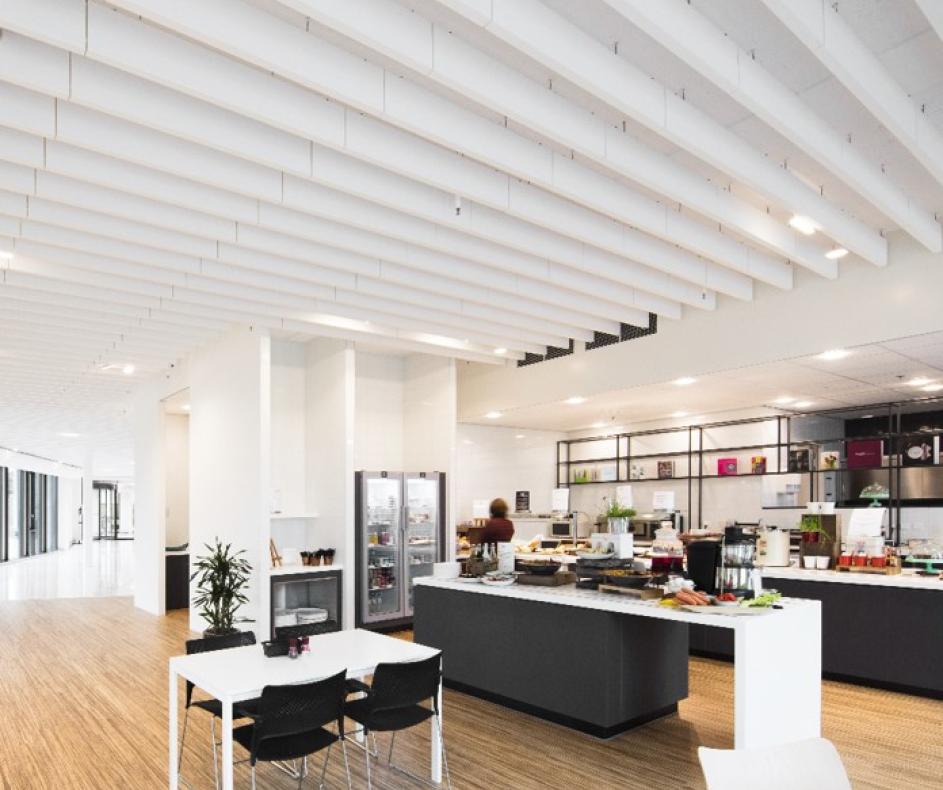 Еcophon Баффлы – это акустические вертикальные элементы без обрамления в форме прямоугольников, доступные в различных размерах. Подвешенные к потолку, эти звукопоглощающие экраны могут создавать четкие линии в интерьере.