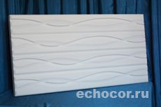 Одним из замечательных свойств акустических панелей ЭхоКор является возможность декорирования поверхностей рельефом. Это может быть геометрический рисунок с пересекающимися линиями или художественная отделка криволинейными линиями. Насыщенность линиями по плоскости и их глубина может варьироваться в пределах толщины панели. Возможно создание повторяющихся рисунков по типу машинного серийного производства, а также не повторяющегося «ручного» производства.