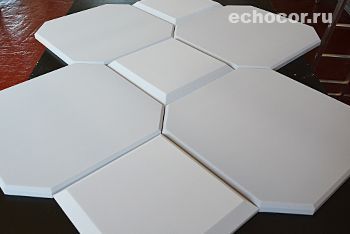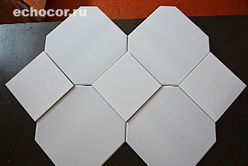 Сочетание размеров диктуется замыслом дизайнера и обрабатываемой поверхностью заглушаемого помещения. Акустические панели «Восьмигранники» предоставляют дизайнерам широкие возможности для того, чтобы оригинально оформить помещение, к тому же внеся в него необходимое количество звукопоглощающих изделий ЭхоКор. Только так создаётся полноценный акустический комфорт.