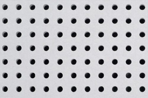 Плиты ППГЗ, перфорация «Пойнт». Смонтированные на каркасе или на стандартной подвесной системе, являются эффективными звукопоглощающими конструкциями резонансного типа. Существенное значение для величины низкочастотного звукопоглощения имеет величина относа плит от жесткой поверхности. Увеличение звукопоглощающих свойств в более широком частотном диапазоне обеспечивается дополнительным размещением плит типа Шуманет во внутреннем пространстве между жесткой поверхностью и облицовкой.