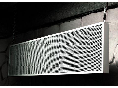 Звукопоглощающая основа – минеральная плита из базальтового волокна в герметичном чехле из базальтовой ткани. Защитный экран из перфорированной оцинкованной стальной кассеты