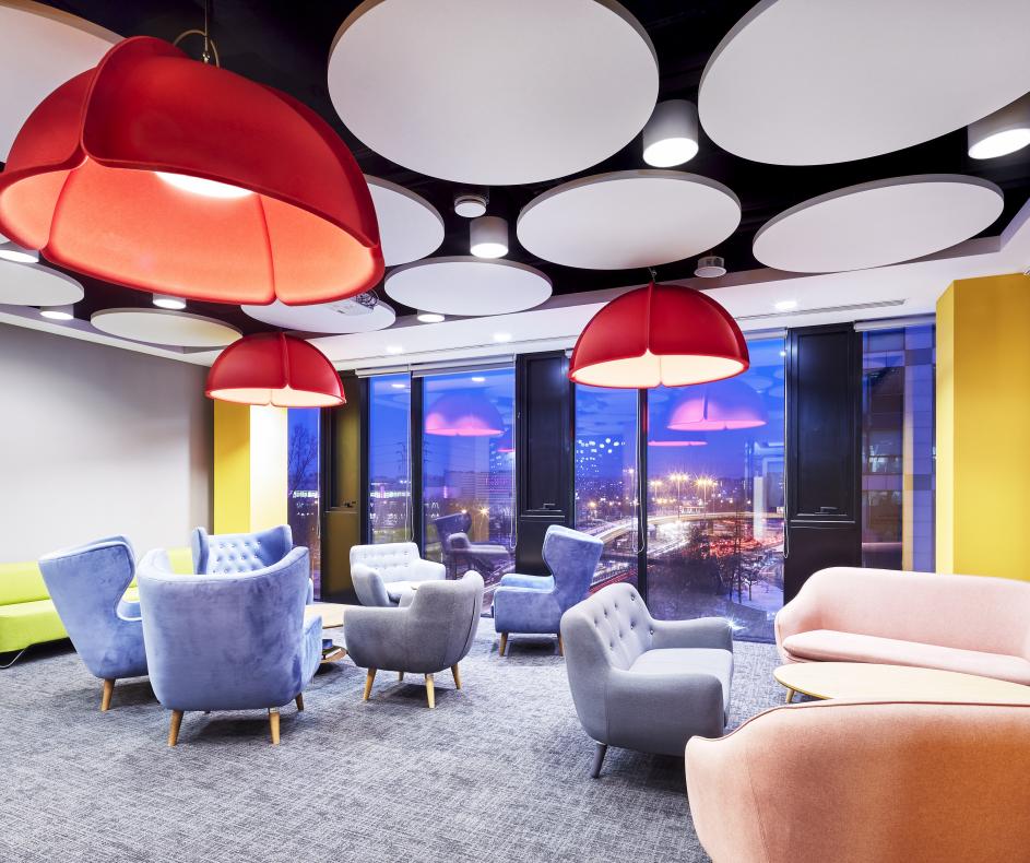 Панель Ecophon Solo Circle — это подвесной элемент, который позволяет реализовывать разнообразные дизайнерские идеи. Она идеальна для помещений, где невозможен или нежелателен монтаж сплошного потолка, например, чтобы сохранить оригинальную высоту. Панели обеспечивают отличные акустические свойства и имеют окрашенные ровные края, что придаёт им современный внешний вид.