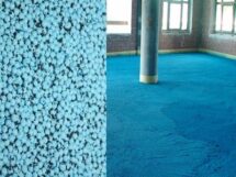 При использовании подложки стеклохолста Вибростек-V300 для плавающего пола под стяжку, важно проложить ленты данного материала по всему периметру помещения, а также завести его на стены повыше, чем будет предполагаемая высота стяжки. Таким образом стяжка не будет соприкасаться со стенами. А поверх полотнищ укладывается разделяющий слой из полиэтиленовой пленки, который также нужно заводить на стены.