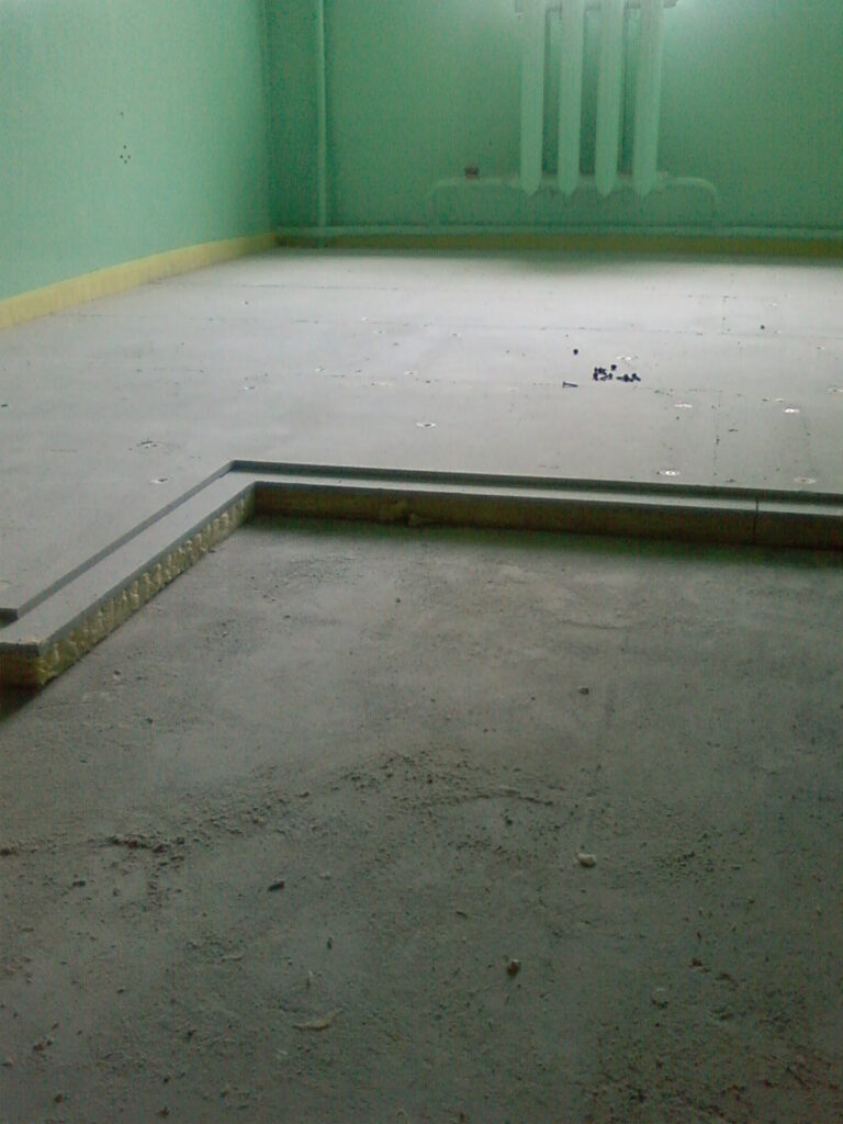 Для пола было предложено использовать совершенно новый продукт для Беларуси «ЗИПС-ПОЛ-Вектор». Данный продукт внешне похож на «ЗИПС-Вектор», однако он имеет уникальные виброизоляционные опоры из материала Sylomer. Такая конструкция обеспечивает прекрасные характеристики по изоляции ударного, воздушного и структурного шума передаваемого через перекрытие.