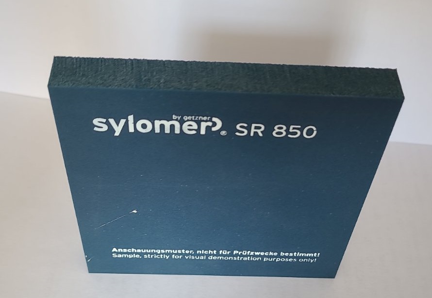 - Sylomer SR 42 — этот материал выдерживает статическую нагрузку на уровне 4,2 т/м². Данный материал обладает высокой жёсткостью и может использоваться в конструкциях с высокой нагрузкой, таких как железнодорожные шпалы, статические нагрузки на здания и железобетонные конструкции.